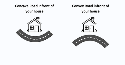 If the road in front of your house is concave, “hugging you” 环抱, the house owners will be able to accumulate wealth. If the road in front of your home is convex反弓 (镰刀煞), the owners’ wealth luck will be bad.