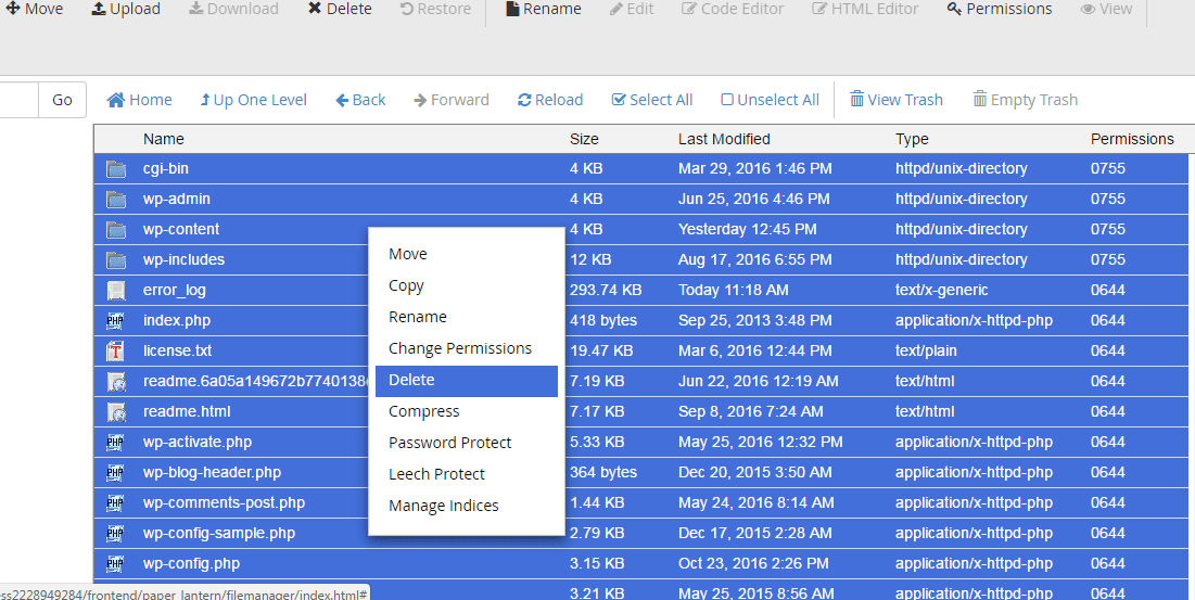 After you have saved wp-config.php file settings now you will deleted all the files of this wordpress install and upload the ones you have downloaded from Godaddy hosting.