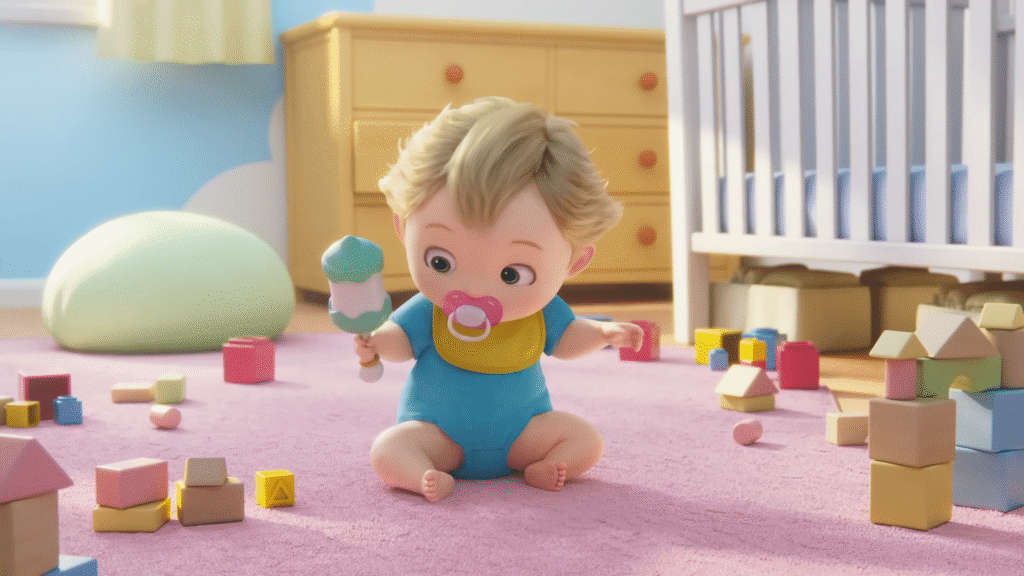 The animation quality has the standard and style of a cinema production and is undoubtedly reminiscent of Pixar productions. The child takes his first steps while following the mysteriously floating pacifier – to the great delight of the mother who is just entering the room. In the Nintendo short film Close to You, a toddler chases his pacifier