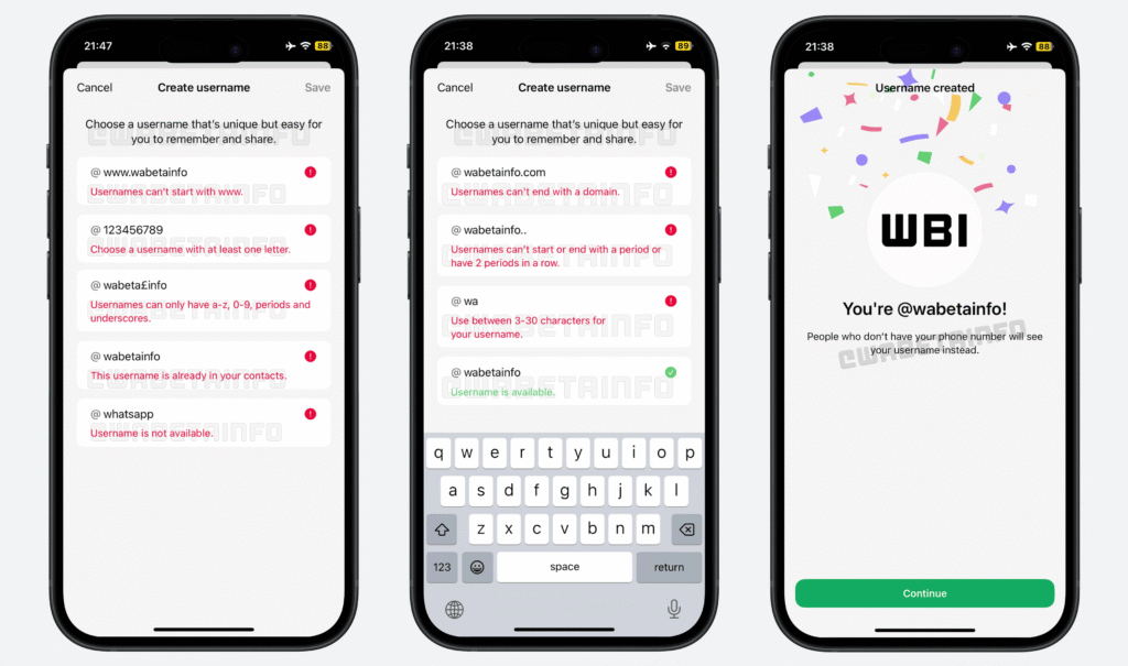 At the center of the new system is the protection of the telephone number. Instead of the phone number, the user name should be displayed by default in the future if a new contact is contacted. Users will be able to create an individual handle that must meet certain criteria: The user name must not be “www.” Start, contain at least one letter and may only use certain characters – including small letters, digits, points and underlined.